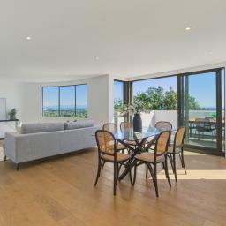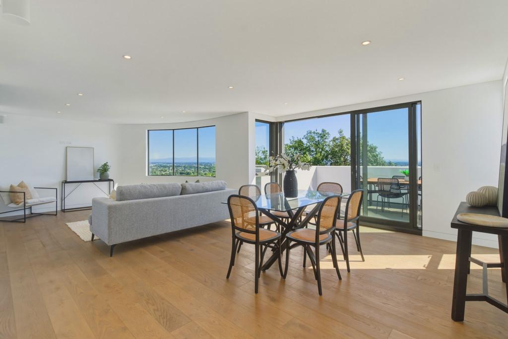 • The Middle Level: A masterclass in elevation and light. The designer kitchen-featuring stone surfaces, a Bosch double oven, induction cooktop, and a wine fridge-flows effortlessly into expansive open-plan living. A second separate living/media room offers versatility, with both spaces opening to private balconies to capture the never-ending vistas.