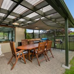 Inside, you’ll find spacious living at every turn. The enormous kitchen and fabulous dining area is made for fun family feasts, with abundant storage and excellent bench space. A wine cellar under the stairs -provides the perfect spot for storing your favourite local drops. A separate lounge with vaulted ceilings, log burner, and heat pump flows seamlessly into a sunlit conservatory and outdoor pergolas — offering effortless indoor-outdoor living. Downstairs hosts four double bedrooms, including a supersized master with walk-in wardrobe and ensuite, plus a main bathroom with separate bath and shower, and a separate toilet. Theres also a dedicated office space, perfect for those who work from home and upstairs, a fifth bedroom or second lounge, a games/rumpus room, and extra storage.