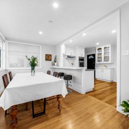 The light-filled kitchen and dining area act as a hub for the home, finished with sleek stone countertops offering spacious workspaces equipped with top-tier appliances. Whether you're a culinary chef or an avid entertainer, this kitchen will be the icing on the cake.
