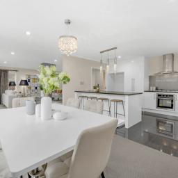A bright north-facing aspect fills the home with afternoon sun, enhancing the open-plan kitchen, dining, and main living area. A second lounge adds flexibility, giving families the ability to separate living spaces without sacrificing connection. The floorplan feels considered and functional, working just as well for busy weekdays as it does for relaxed weekends.