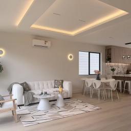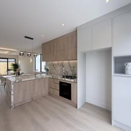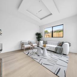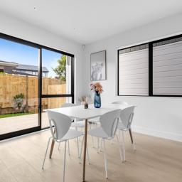 Step into a bright, open-plan living area with high stud ceilings that enhance the sense of space and light. The contemporary kitchen, complete with premium Bosch appliances and a gas cooktop, forms the heart of the home-ideal for everyday living and effortless entertaining.