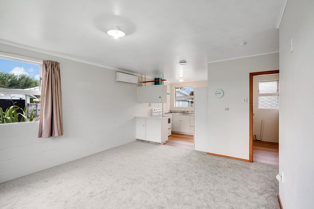 The heart of the home is the light-filled open-plan living area, kept comfortable year-round with a heat pump. The functional kitchen flows seamlessly into the lounge and dining space, creating an inviting hub for everyday living.