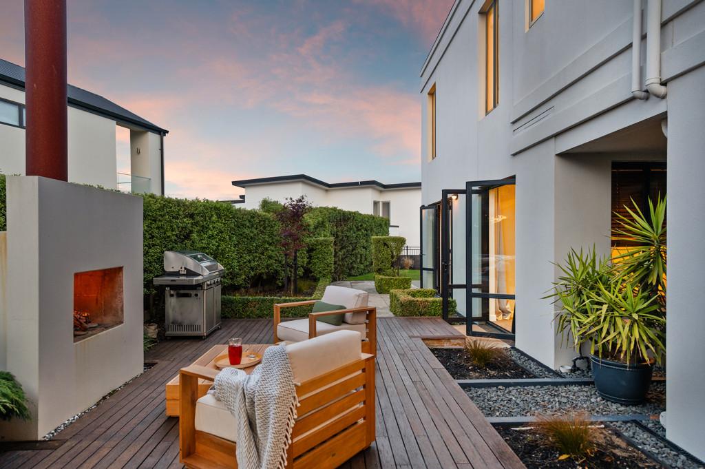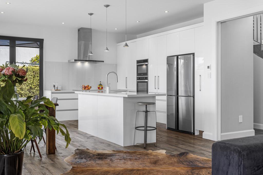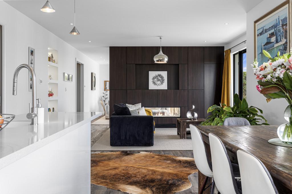 At the heart of the home, open-plan kitchen, living and dining spaces have been redesigned post-quake and remain timelessly contemporary while providing a welcoming hub for family life and entertaining. Partial underfloor heating, a double-sided gas fireplace and quality finishes create warmth and cohesion, while the well-appointed kitchen with induction cooktop and dual ovens is designed to bring people together.