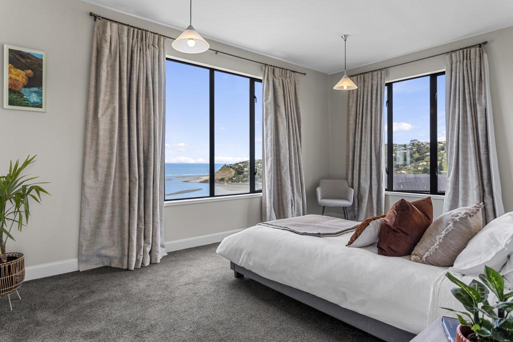 Framed by intimate, sweeping water views over Moncks Bay, this substantial family home enjoys a prized lower-slope position on 803sqm of level land, offering a rare balance of outlook, space and ease in a highly desirable hillside setting.