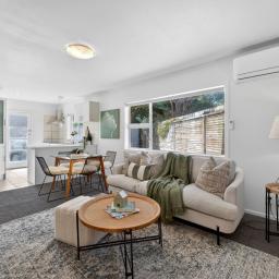 Set within a well-maintained complex, the unit enjoys excellent natural light and expansive 80sqm (approx.) private outdoor spaces, including a generous refurbished brick patio ideal for alfresco dining, a sun-drenched new black timber deck, and a handy shed for extra storage. The open-plan kitchen, dining, and living area forms the heart of the home, flowing effortlessly to the outdoors, perfect for entertaining, relaxing, or soaking up the sun.