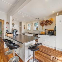 Behind its classic facade, the home opens into light-filled living spaces designed for everyday living. The modern open-plan kitchen connects with the living and dining areas, creating a hub for family life and entertaining. The living spaces flow outdoors to a covered rear deck, providing a sheltered spot that works year-round and overlooks a flat, fully usable backyard. With space for kids, pets or gardening, plus a large garden shed, this is a section that’s both practical and easy to love.