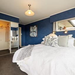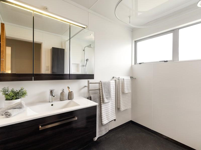 The lower level offers impressive flexibility, ideal for families needing extra room or buyers seeking income potential. A large bedroom with its own ensuite is complemented by a separate laundry and a 1.5 car internal access garage. With provisions already in place for a kitchenette and its own hot water cylinder, this area lends itself perfectly to extended family living, guest accommodation, or a home and income style setup. A ranch slider opens to the view and connects to a private path leading to an external car park, enhancing independence and privacy.