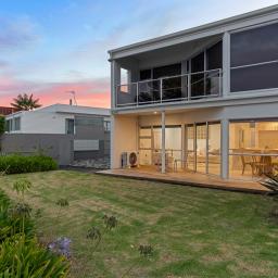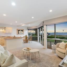 Filled with natural light, the open plan living, dining and kitchen spills out to a semi-covered deck to bring the outdoors in. From morning coffees with the sunrise to evening wines as the waves roll in, every moment here is a celebration of seaside living.