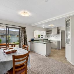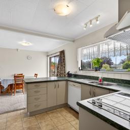 Inside, light-filled living spaces create a welcoming atmosphere for everyday family life. The modern kitchen is well set up for busy households and entertaining alike, featuring a wall oven, cooktop, dishwasher, and a handy water filtration system. From here, the open-plan dining area connects easily to a separate lounge, where a gas fire and heat pump ensure year-round comfort. Large doors open straight out to the covered deck, making indoor-outdoor living a breeze.