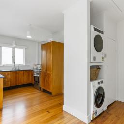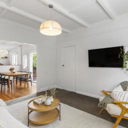The freshly painted kitchen, dining and living space flows openly across freshly sanded native timber flooring topped off with an ambient and warm gas fireplace.