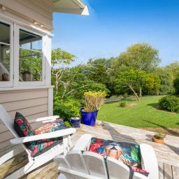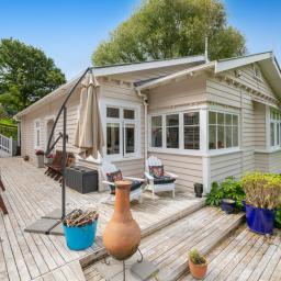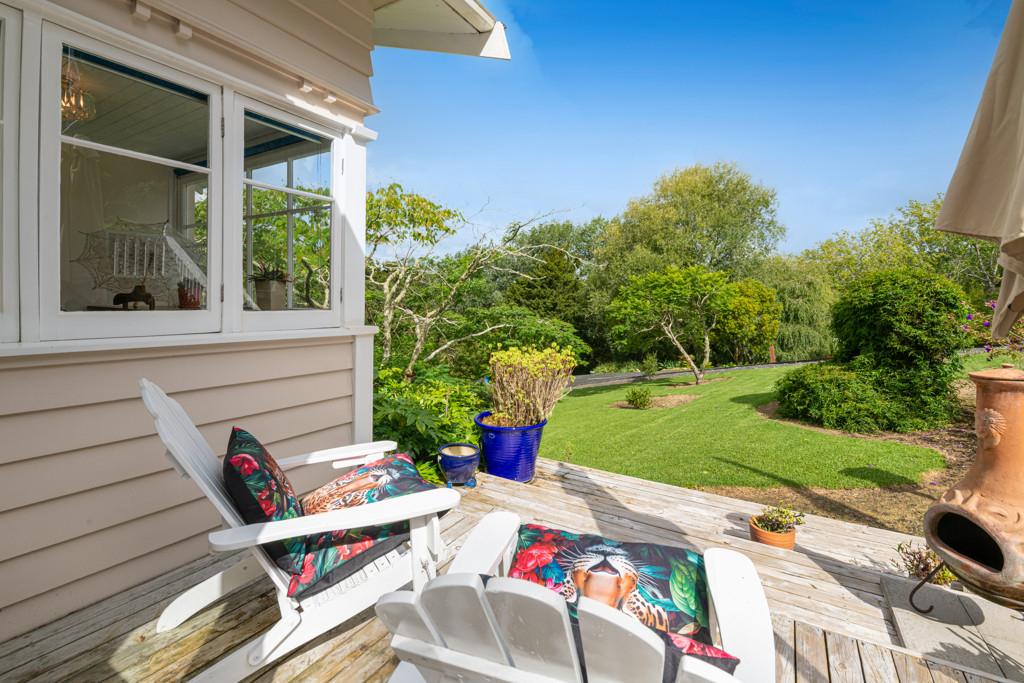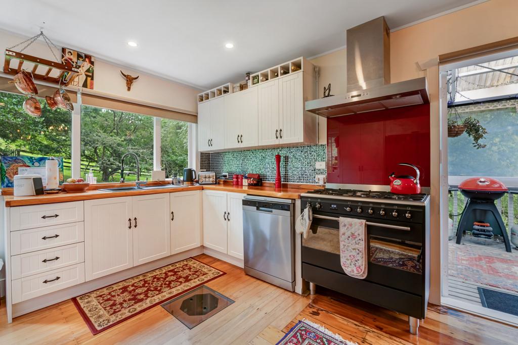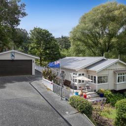 This charming 1940's 3 bedroom villa/bungalow will capture your heart being beautifully restored and is elevated to capture magical rural views and facing north to ensure plenty of sunshine and warmth. Comes complete with the luxury of gas heating, stained glass windows, matai floors and a recently updated kitchen where you can cook up a storm using your very own herbs and vegetables. There are a variety of fruit trees,bush tracks, glow worms and an abundance of bird life. There is a large enclosed deck area with a spa pool for you to relax in after a hard day's work. Also the added bonus of a solar powered hut with a mezzanine floor for a night away.