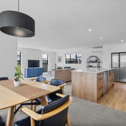 This stunning post-quake home perfectly combines style, comfort, and convenience for modern family life. The heart of the home is the open-plan living area, flowing seamlessly into a cook's dream kitchen complete with a walk-in pantry-ideal for family meals and entertaining.