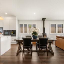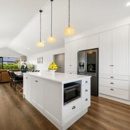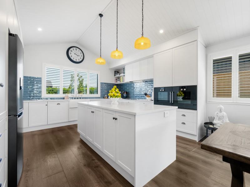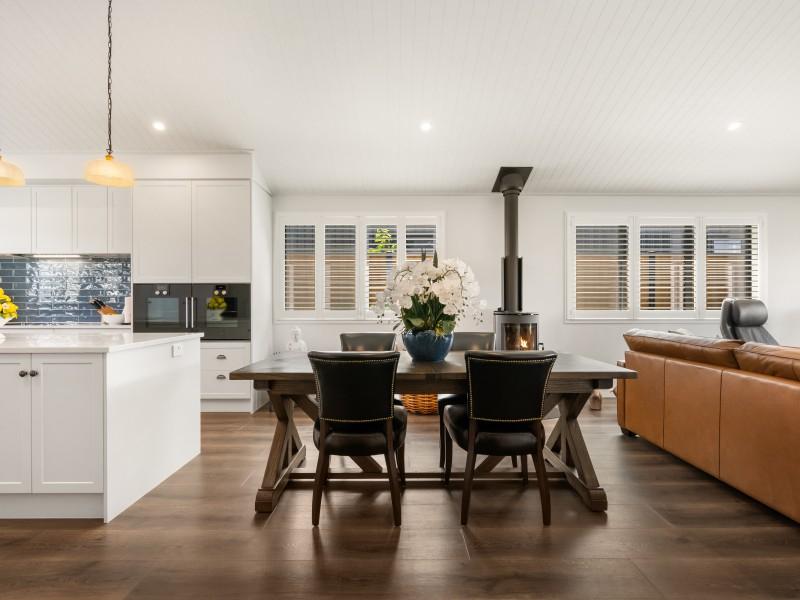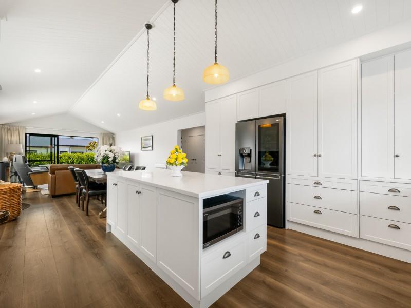 From the moment you step inside, the home impresses. A long, elegant hallway draws you through double barn doors and opens into a stunning lounge crowned by a cathedral ceiling - a space that feels both grand and intimate. The designer kitchen is a true centrepiece, featuring stone benchtops, classic shaker cabinetry, a substantial island, and an abundance of storage. For those who appreciate exceptional quality, the appliance selection sets this home apart. Two Gaggenau ovens deliver precision cooking, renowned for their engineering excellence and trusted by professional chefs worldwide. The Gaggenau 200 Series induction hob also delivers powerful, responsive cooking, while the Sirius undermount rangehood with externally mounted motor and Insinkerator 200 Series operate whisper-quietly - ensuring peace and conversation remain uninterrupted. The chef of the household will genuinely delight in the calibre and thoughtfulness of these inclusions.