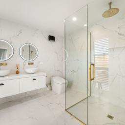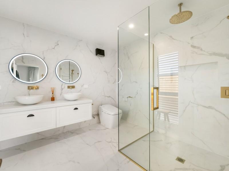 Outdoor living is equally impressive, with dual pavilion-style entertaining areas providing distinct spaces for al fresco dining and relaxation. Thoughtfully positioned Moderno carbon infrared heaters allow these areas to be enjoyed year-round, while evenings can be spent unwinding in the Alpine Nepal spa pool or hosting friends in complete privacy and comfort.