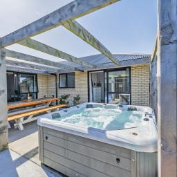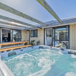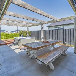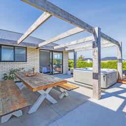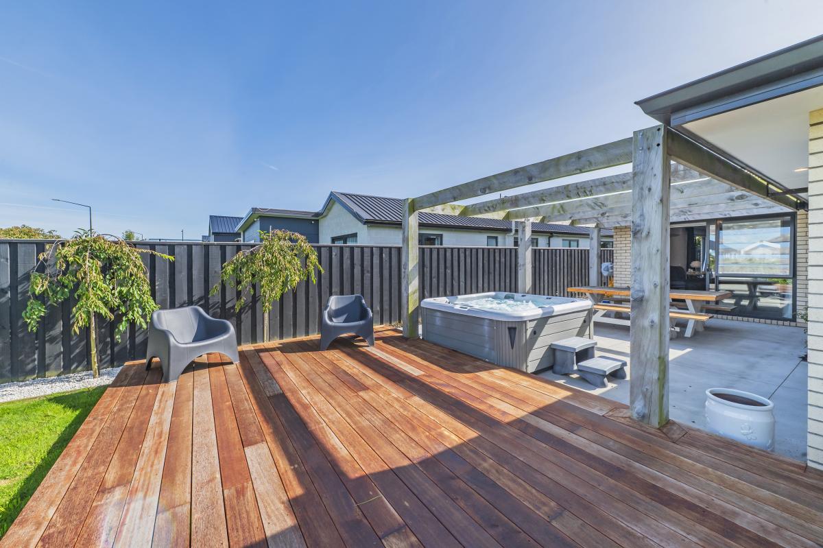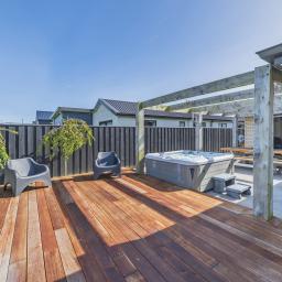 The open-plan kitchen and living area is light and welcoming, flowing out to a sunny patio complete with a spa, a great spot to relax at the end of the day. A separate deck provides an ideal additional option for summer entertaining.