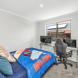 All three bedrooms are well sized and thoughtfully laid out. The master includes an ensuite, walk-through wardrobe and sliding doors opening directly to the patio and spa, while a modern family bathroom services the remaining bedrooms.