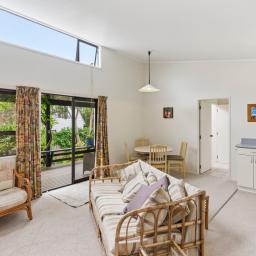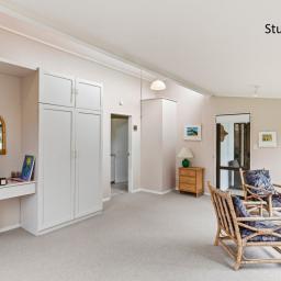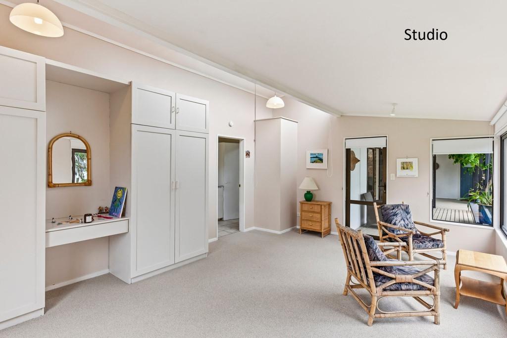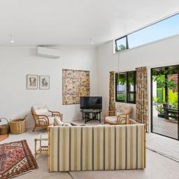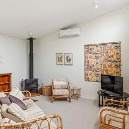 The Studio: 2 bedrooms, new carpet, a functional kitchenette & a modern bathroom. A lovely open plan living & dining seamlessly connect with the covered decked outdoor entertaining, the heat pump & a wood burner fire provide year-round comfort.
