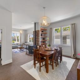 With a sunny North-facing frontage, this home invites you in and it does not disappoint. A generous deck greets you at the entrance, while ornate timber joinery, stained glass, and traditional sash windows set a tone of enduring character. Two large double bedrooms are positioned off the entrance hall, with a third bedroom at the rear, all filled with natural light and pleasant outlooks.