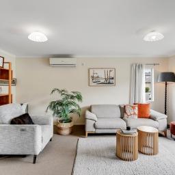 The heart of the home is the spacious open-plan living area, warmed by a heat pump and designed for easy living and entertaining. The wrap-around kitchen overlooks the rear outdoor area, creating a natural connection between indoor and outdoor spaces and making family life effortless.