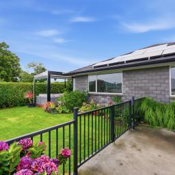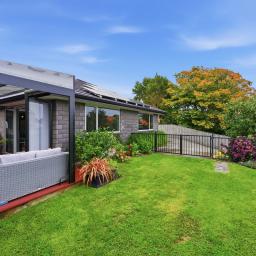 The contemporary kitchen is well appointed with a walk-in pantry, while the master suite opens directly to the spacious deck and features a walk-in wardrobe and ensuite. Two further double bedrooms are supported by a clean, modern family bathroom, making the layout both practical and inviting. Established easy-care grounds, solar panels, and internal-access garaging complete the package, with the added bonus of space to create a spa retreat just outside the master bedroom for ultimate relaxation under the stars. All of this sits within walking distance of Pukekura Park, shops, schools, and local amenities – a superb lock-and-leave option or relaxed everyday home.