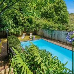Outdoors, the tiered setting feels like a private retreat, complete with an in-ground swimming pool, established trees, and mature plantings. This sheltered, leafy space has been well-loved over the years and now presents an opportunity to refresh and restore into a true entertainment haven. A sunny courtyard is ideal for morning coffee, while fruit trees and landscaped gardens contribute to the home's privacy and sense of permanence.