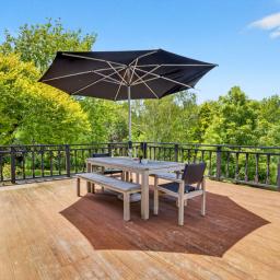 Three generous double bedrooms all with built in wardrobes. The master bedroom opens directly onto the deck and is complemented by a conveniently located bathroom. A full family bathroom services the home, while a third toilet is positioned in the laundry. Practicality is well considered with ample storage and an office nook.