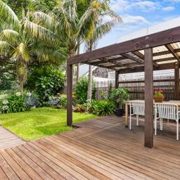 Experience seamless indoor-outdoor flow as the living space spills out to a west-facing alfresco deck. Surrounded by lush, landscaped greenery and palms, it's an ideal setting for golden-hour entertaining or quiet relaxation. Two well-appointed bathrooms, including a chic master ensuite, provide a touch of spa-like serenity, all finished with the same fresh, modern feel found throughout the home.
