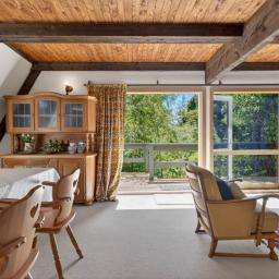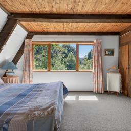 Open plan living downstairs, with a heat pump in the lounge for year-round comfort and also a wood burner for those cosy, cabin-like evenings. Doors opening out onto the deck for talking in the breathtaking views.