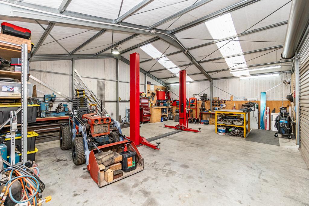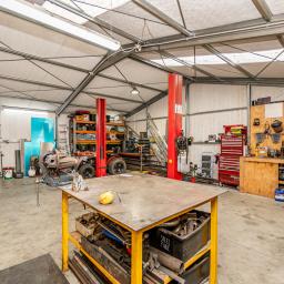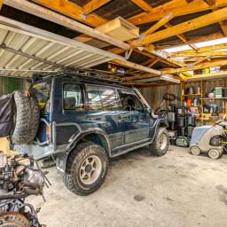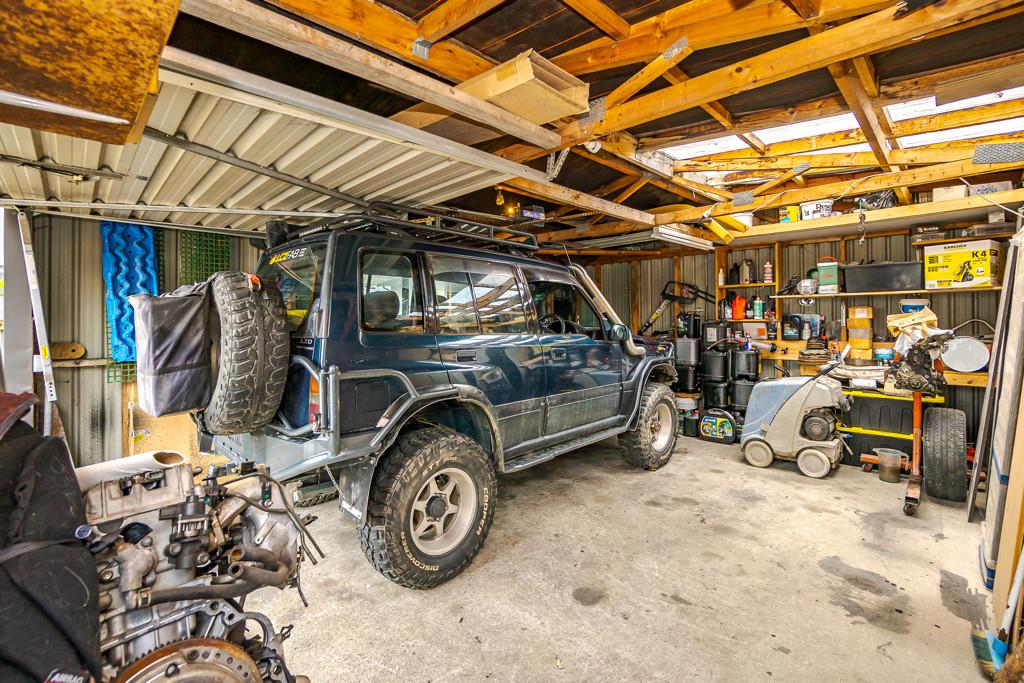 Out the back is where the magic happens. A massive workshop with a serious two post hoist - the kind of space every tinkerer, maker or dreamer secretly wants. Enough garaging for four cars plus room to weld, restore or run a side gig without tripping over yourself. The hoist stays, by the way, it's part of the deal.