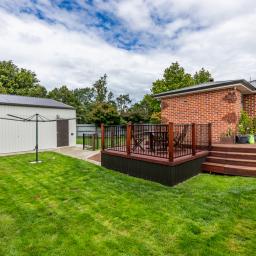 The brick glows warm in the afternoon light, the lawns are clipped neat, the deck waits, and there's that quiet sense that whoever lives here knows how to get things done, and how to enjoy life when they clock off.