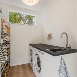 The renovation has been approached with intention, resulting in spaces that feel welcoming and comfortable. Generous windows draw natural light into the home, creating a bright, airy atmosphere and strengthening the connection to the surrounding native landscape.