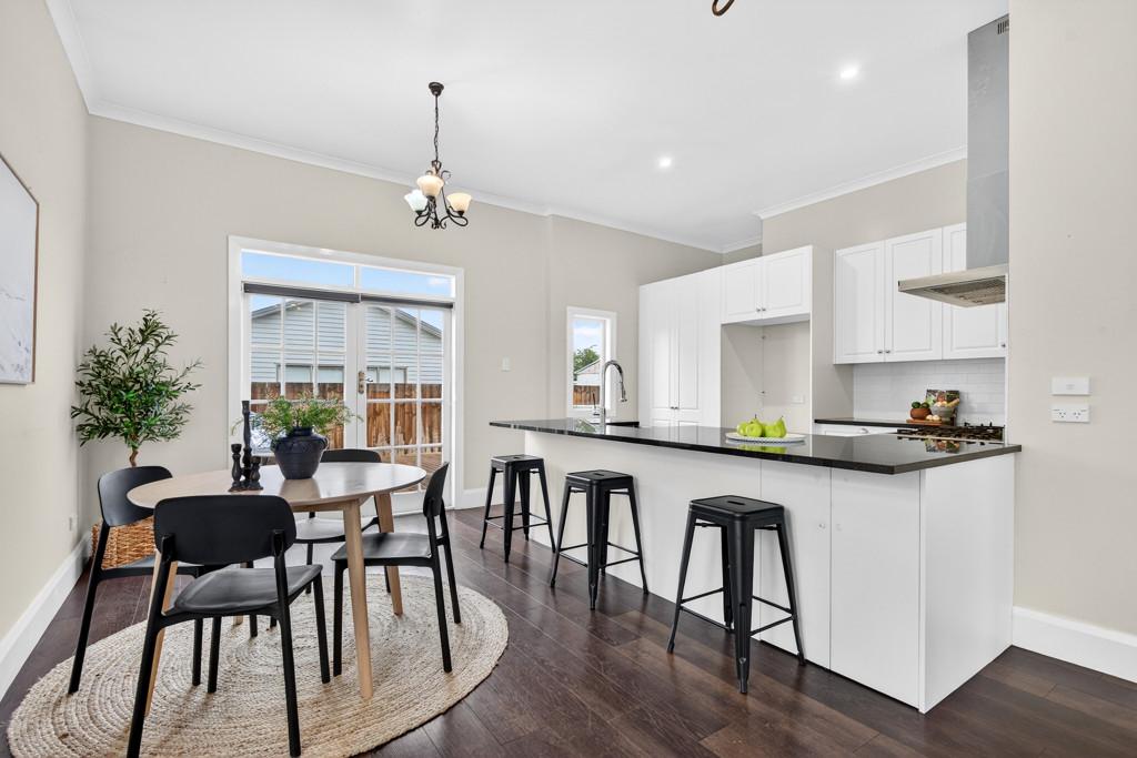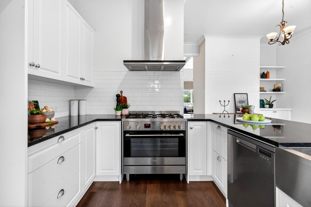 The kitchen is a true standout, featuring stone benchtops, a classic butler's sink, and seamless flow through French doors to a west-facing deck - an ideal space for entertaining family and friends.