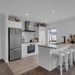 Set on a generous 520m² section, the 131m² single-level home has been thoughtfully designed with both form and function in mind. The sun-filled open-plan living area is anchored by a sleek, spacious kitchen with breakfast bar, flowing effortlessly into a well-proportioned living space, ideal for relaxed family living and effortless entertaining.