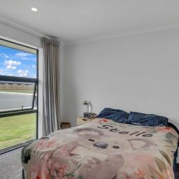 The home offers three bedrooms, including a master with ensuite, complemented by a modern family bathroom. Year-round comfort is assured with a heat pump and full double glazing throughout, while the internal-access garage provides everyday convenience and security.