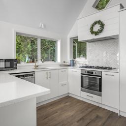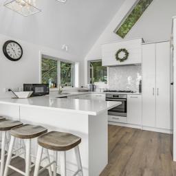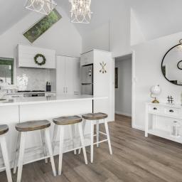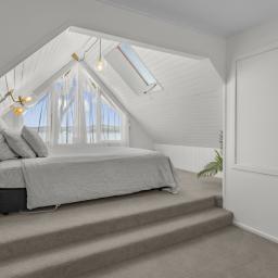 Inside, soaring pitched ceilings enhance the sense of space and light, while the coastal-inspired colour palette reflects the surrounding environment, creating a calm, welcoming atmosphere throughout. Every detail has been thoughtfully considered to deliver a peaceful retreat by the sea.