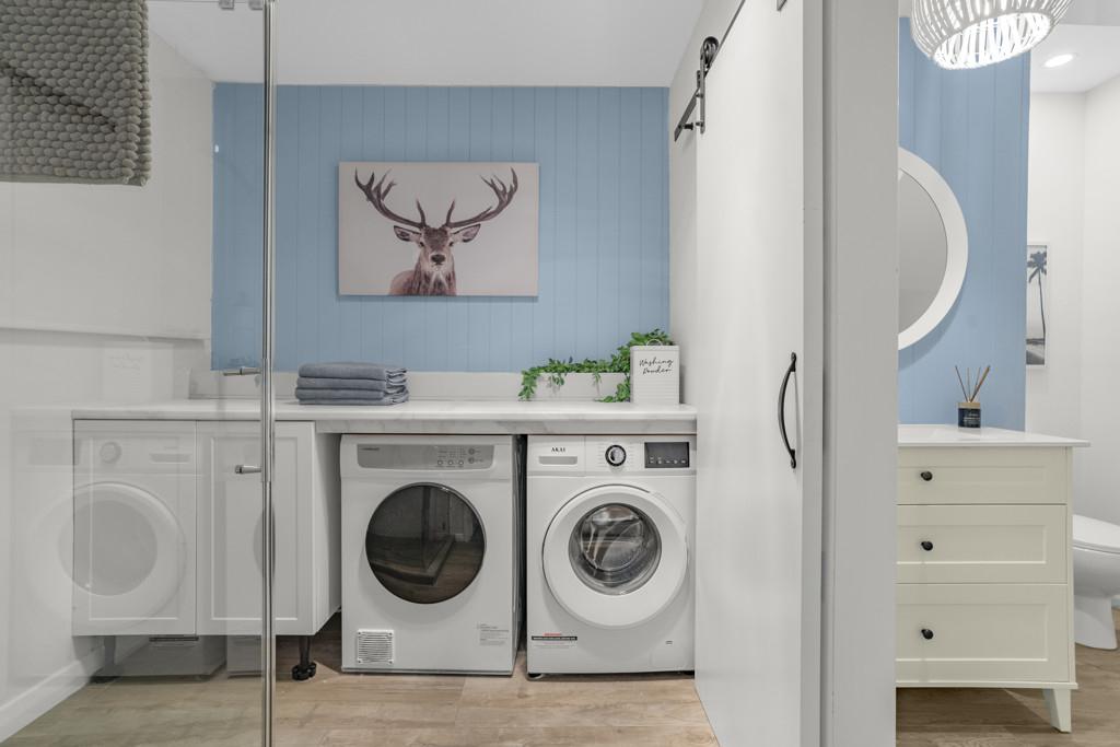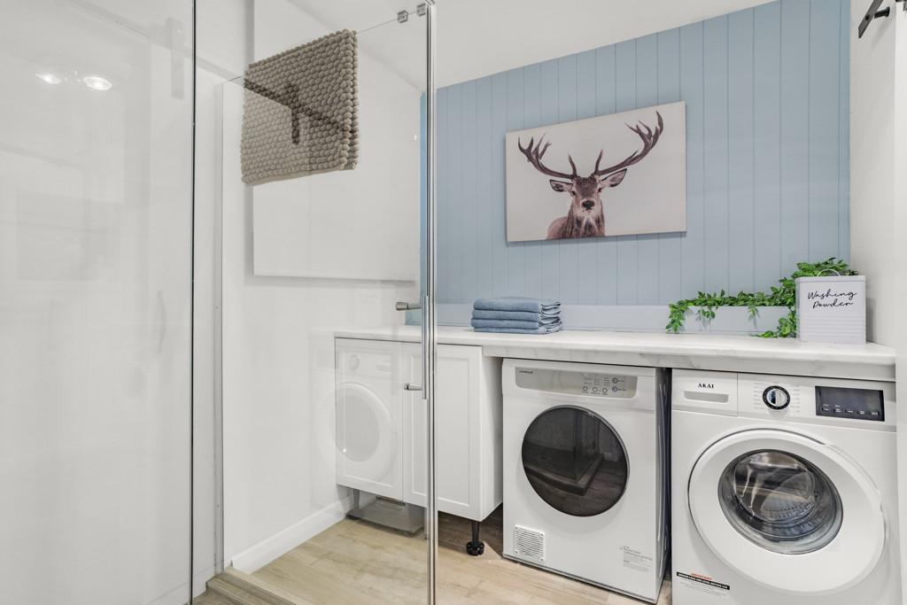 - Two modern bathrooms, one incorporating the laundry