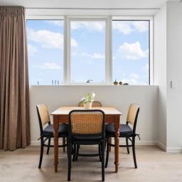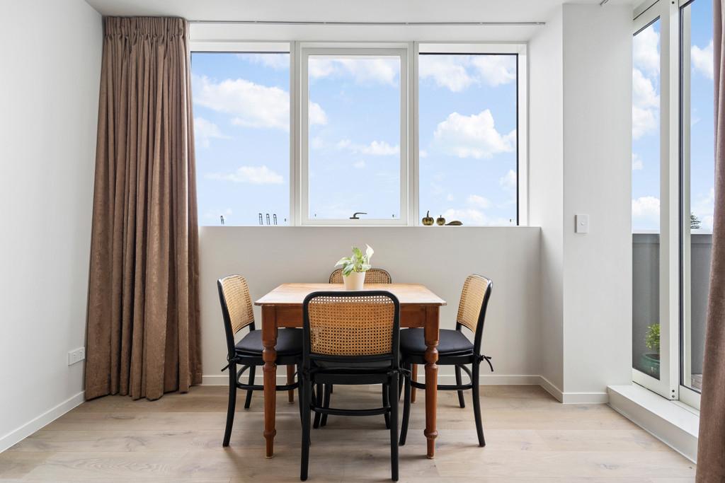 The striking layout is designed to make an impact. A sleek kitchen with premium European appliances anchors the space, while vast open-plan living and dining areas are framed by glass windows & doors, capturing Auckland's harbour and cityscape.