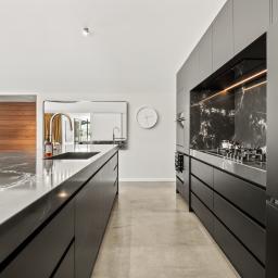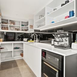 At the heart of the home, expansive open-plan living and dining areas flow effortlessly to the sun-soaked courtyard and gardens, creating an ideal setting for relaxed family living and effortless entertaining. A full, recently installed high-end kitchen anchors the space, sleek and contemporary in design, complete with premium appliances and a walk-through butler's pantry that delivers both style and practicality.
