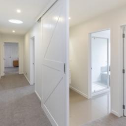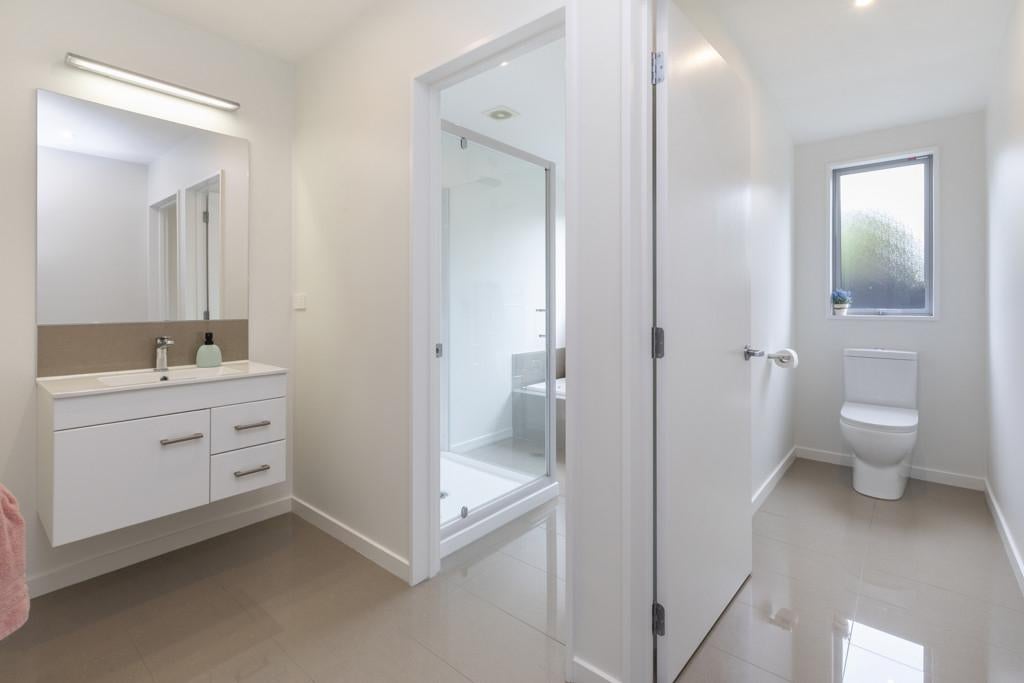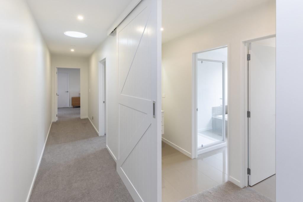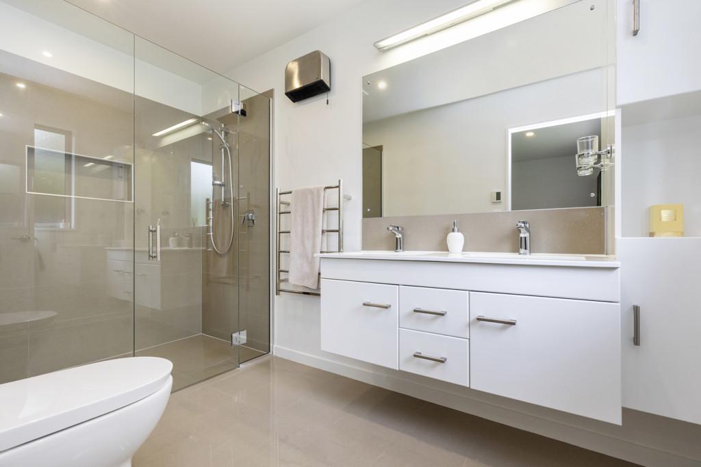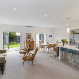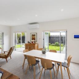 Providing a peaceful sanctuary, the master suite includes a walk-in-wardrobe, luxurious ensuite with a double tiled shower and twin vanities, plus sliders to a sunny terrace. Two further double bedrooms are accessed off the main hallway, along with a three-way family bathroom with sliding barn door, plus a separate laundry with access to the rear of the property where there is a well laid-out utility area. Comfort is assured throughout the seasons with a gas fire, heat pump, underfloor heating in the ensuite, and a Lossnay ventilation system, completing a home that blends functionality and effortless family living.