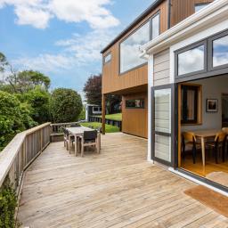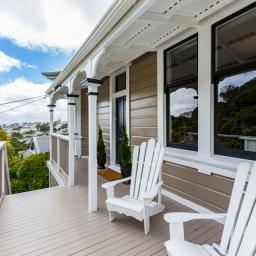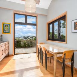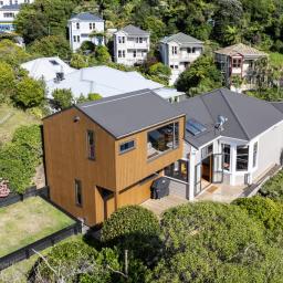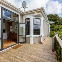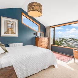 • Spacious primary bedroom within the modern extension, enjoying stunning views over Wellington Harbour, complemented by a walk-in wardrobe and a generous tiled ensuite.