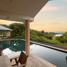 Designed and built by the current owners, the 330sqm home stretches across a wide, thoughtful footprint, creating a sense of scale while remaining warm, welcoming and incredibly liveable. Curved feature windows frame the landscape perfectly, opening out to the infinity-style pool where lake views become part of everyday life.