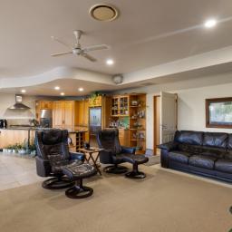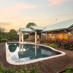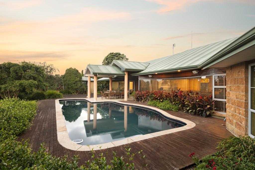 Set on 8,413sqm of freehold land, the grounds are as impressive as the home itself. Established palms, fruit trees, vegetable gardens and open lawn provide space to grow, unwind and truly embrace the lifestyle on offer. Completing the picture is a 120sqm+ shed with high stud access ideal for boats, campers or serious storage.