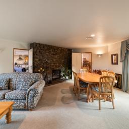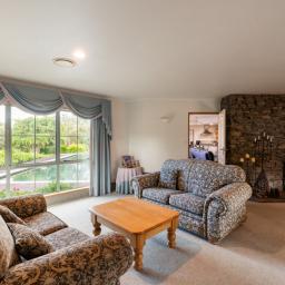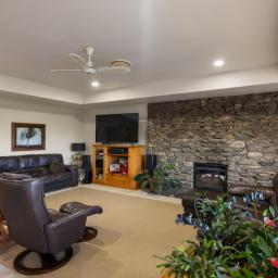 Inside, two generous living spaces are anchored by a striking schist feature wall with a dual-sided fireplace, the heart of the home and a natural gathering point for family and friends. This is a home designed to slow life down, without sacrificing comfort or connection.