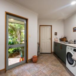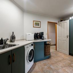 A standout feature is the oversized laundry perfectly positioned and easily doubling as a butler's pantry with seamless connection to a private rear courtyard and the kitchen and living spaces. Here, lush planting and a tranquil stone pond create a peaceful retreat away from the main living zones.