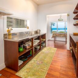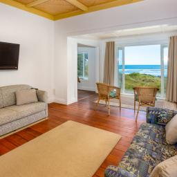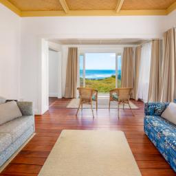 The open-plan lounge combined sitting area features space, light and bright atmosphere. French doors makes the perfect picture frame for the beach.