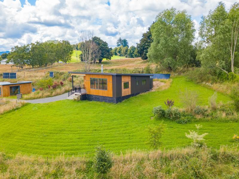 Set on 1.06 hectares, this beautifully crafted mini-lifestyle property offers the perfect balance of modern comfort and off-grid independence. Built in 2024, the two-bedroom home enjoys a lovely outlook, with large windows framing the surrounding landscape and flooding the living spaces with natural light.