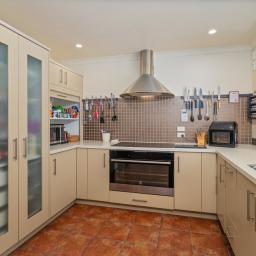 As you enter, you will be greeted by open-plan living areas that seamlessly connect to a modern kitchen and dining area, perfect for entertaining guests. Angular ceilings add to the sense of space. The kitchen is spacious and offers all the "mod cons", including a cooktop and wide oven, fridge/freezer with plumbed icemaker, dishwasher, filtered water and waste disposal unit, ensuring meal preparation is a breeze. A serving window from the kitchen to the outside makes open-air entertaining a truly synchronised and enjoyable event.