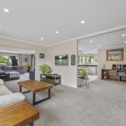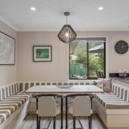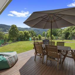 One of the home’s key strengths is its multiple living spaces, providing flexibility for families, guests, or those wanting separate areas to relax or entertain. The main living zone flows effortlessly to a large, sun-soaked entertaining deck off the lounge and kitchen — a perfect setting for summer barbecues, long lunches, or quiet evenings surrounded by nature.