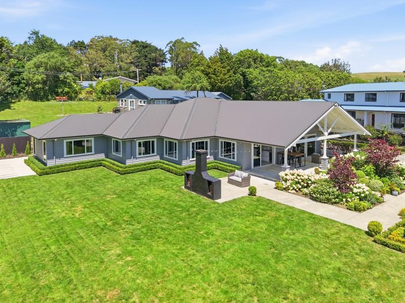 Established formal gardens create a stunning arrival, setting the tone for what lies within. The dramatic black formal lounge and expansive dining area - complete with a bar for entertaining - both feature stacker doors opening to a covered portico, creating seamless all-weather indoor/outdoor living. An outdoor fire makes this the perfect space for entertaining year-round.