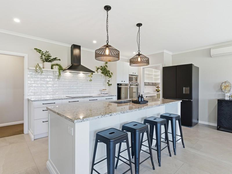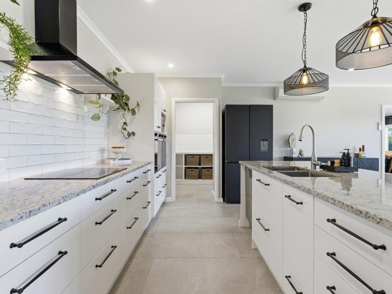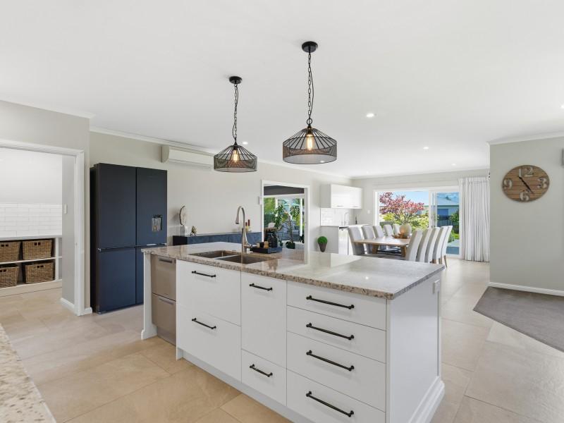 The quality kitchen is the heart of the home, showcasing stone benchtops, double ovens, induction cooktop, underfloor heating and a full scullery - designed for both function and flair. A dedicated office adds flexibility for work or study.